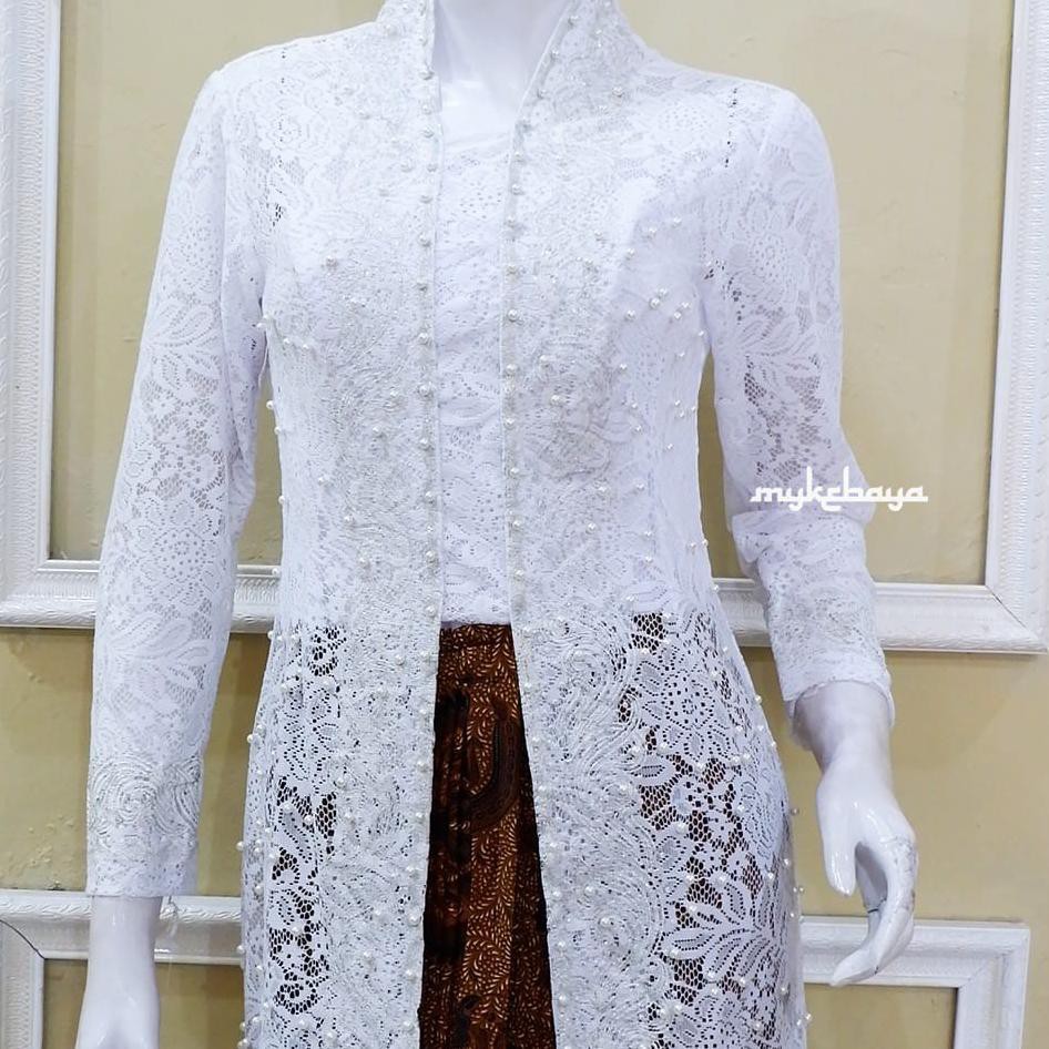Trusted Kebaya Akad Aurakasih Putih Kutubaru Brokat Pearly