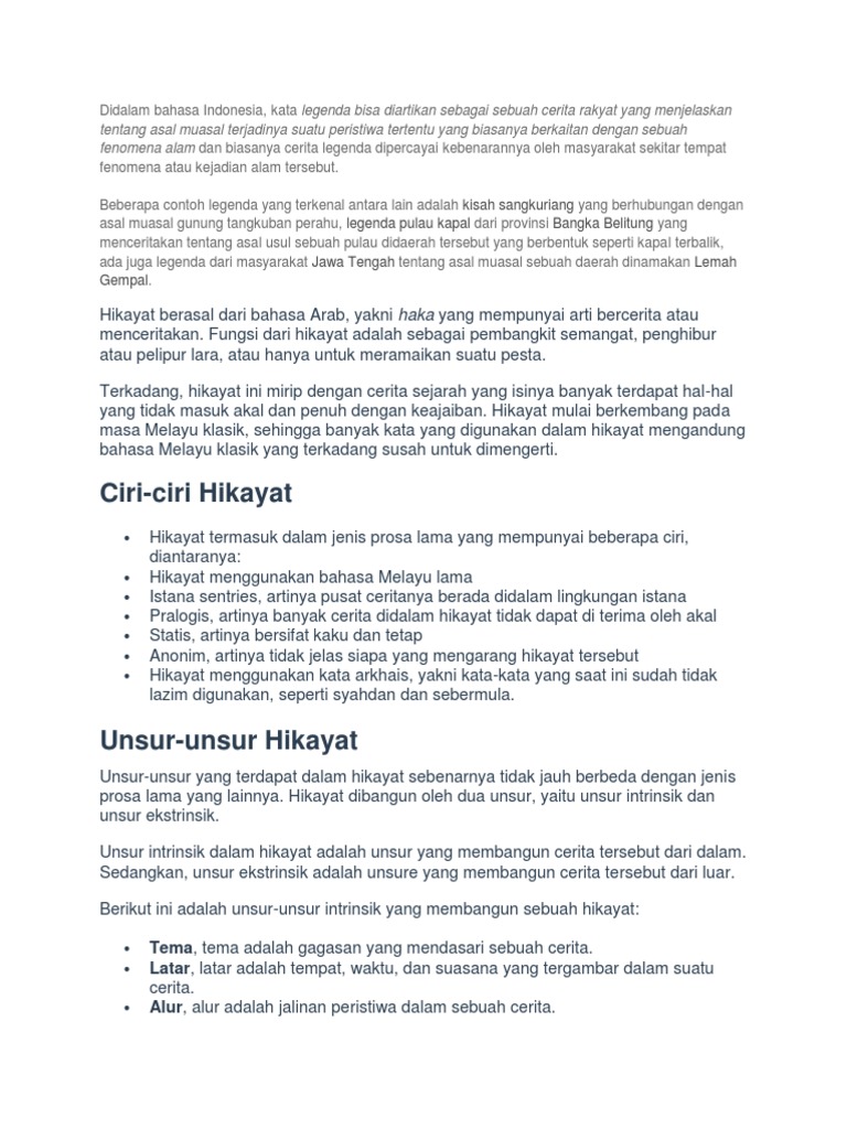 Kumpulan Contoh Hikayat Beserta Unsur Iintrinsik Dan Unsur
