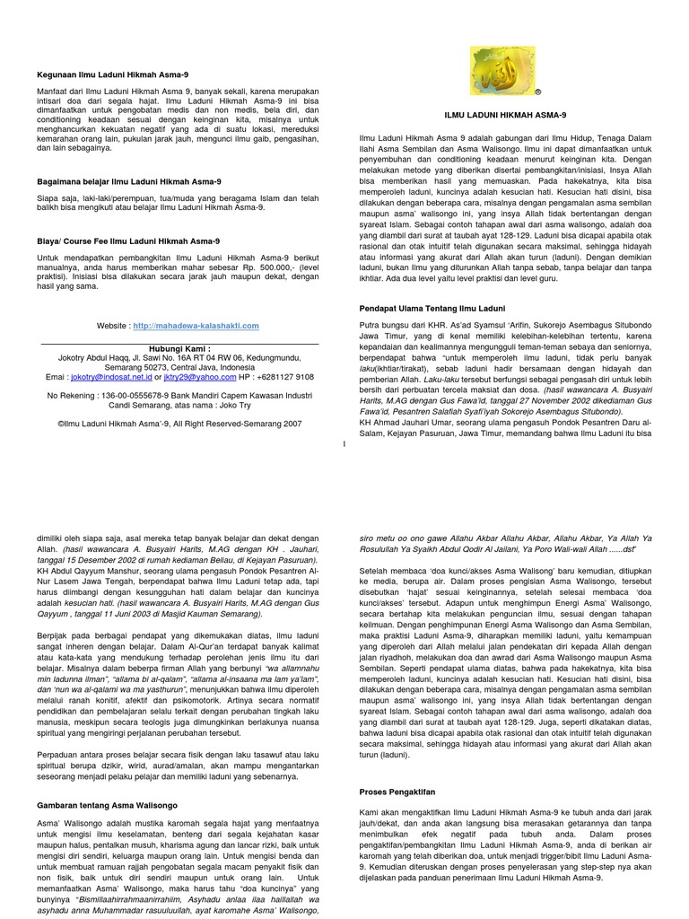 Modul Ijazah Ilmu Hikmah Program Guru Besar Ilmu Asmak Karomah