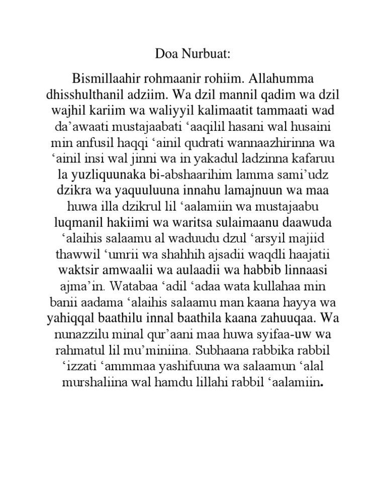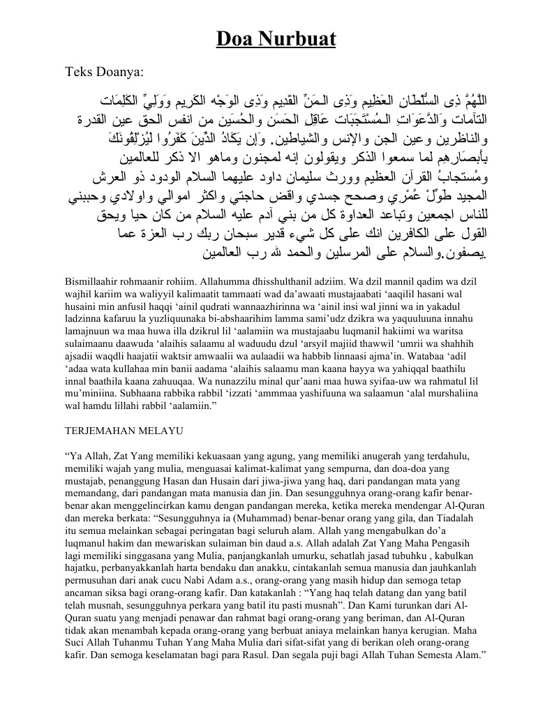 Doa Nurbuat Agung Ukuran Besar Lengkap Arab Latin Dan