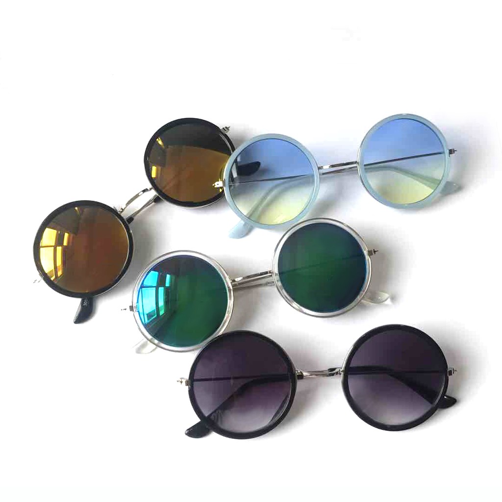 Murah Kacamata Hitam Frame Metal Bulat Kecil Lensa Warna Warni