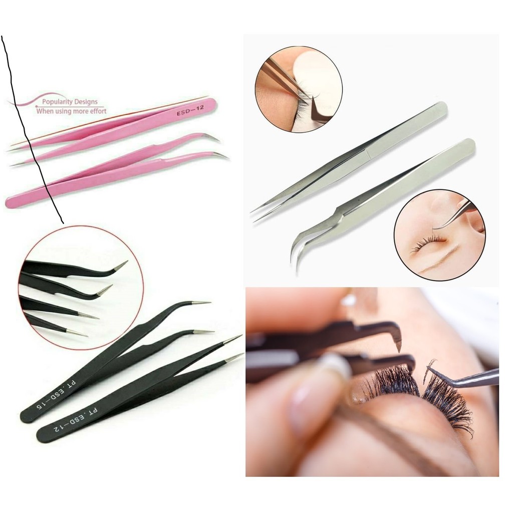 Pinset Penjepit Bulu Mata Tweezers Eyelash Extension Bengkok