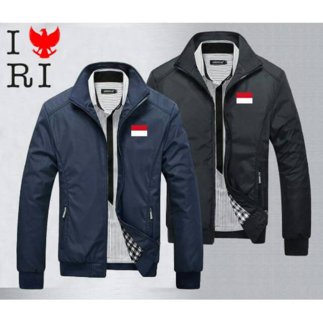 Jaket Bomber List Pria Terbaru Logo Bendera Merah Putih Bahan Adem