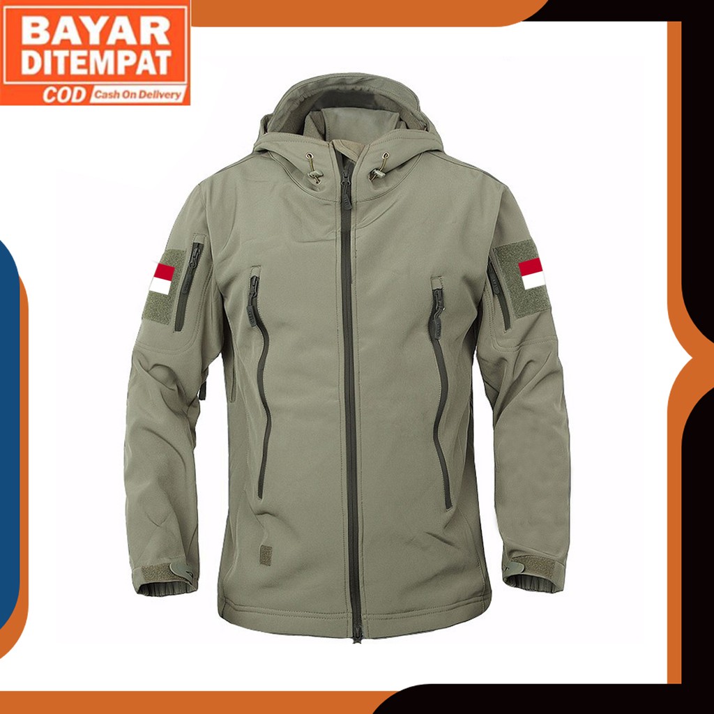 Jaket Pria Tactical Bahan Taslan Waterproof Anti Air Bonus Logo