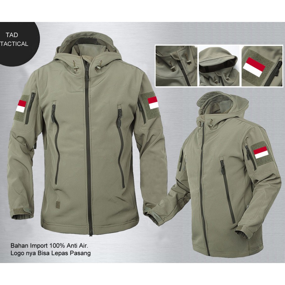 Jaket Tad Tactical Import Hijau Army Free Logo Merah Putih