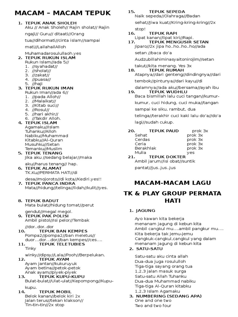 Kumpulan Lirik Lagu Kreasi Anak Paud Dan Tk Edukasi Anak