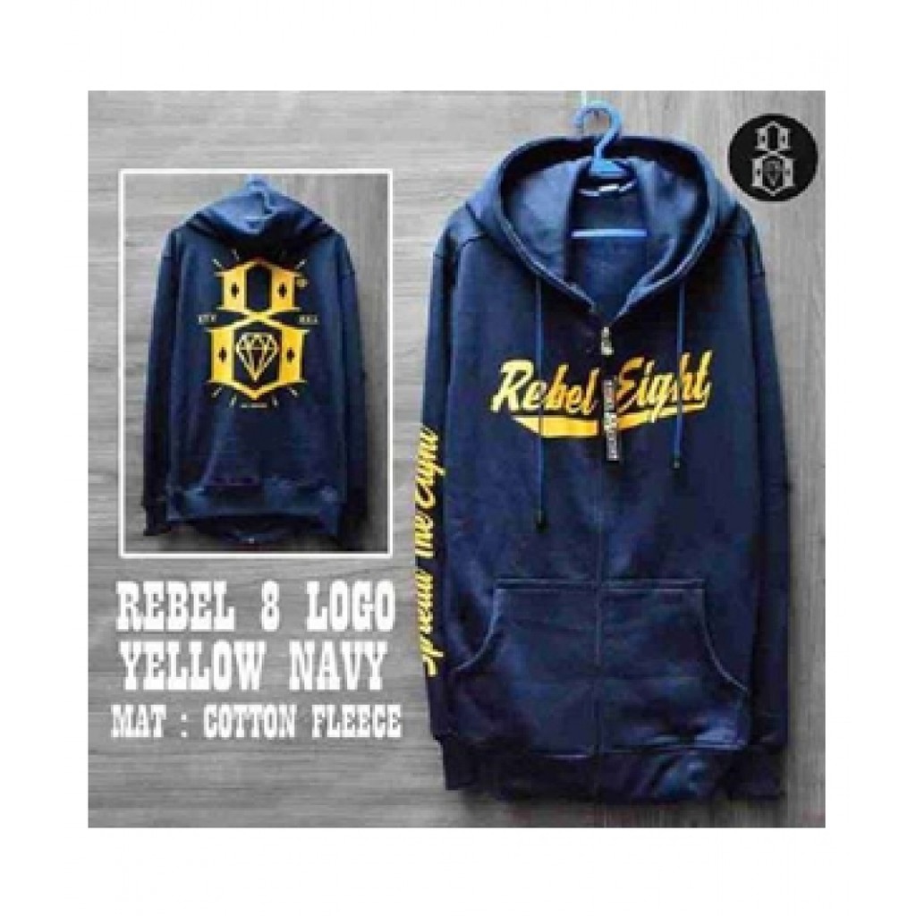 Jaket Distro Pria Logo Rebel Eight 8 Yellow Navy Shopee Indonesia