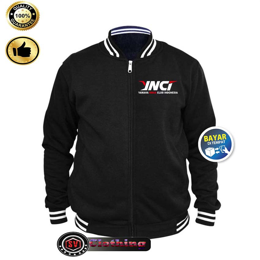 Jaket Baseball Varsity Black Logo Ynci Nmax Indonesia White Red