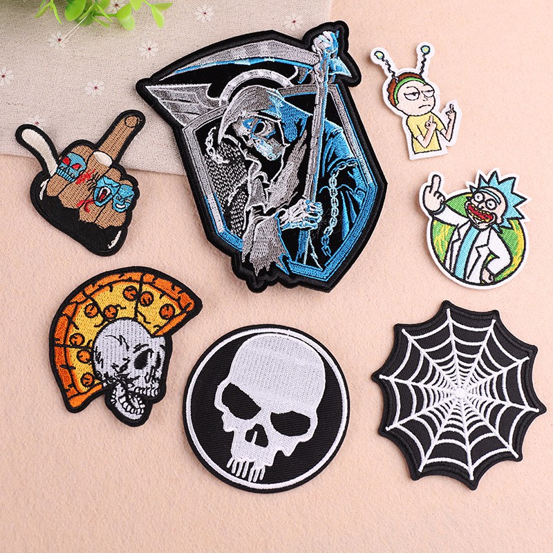 Emblem Biker Pola Tengkorak Tipe Jahit Seterika Pasang Jaket Denim