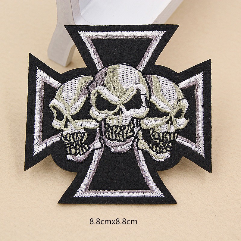 Emblem Bordir Bentuk 3 Tengkorak Jahit Setrika Untuk Diy Dekorasi