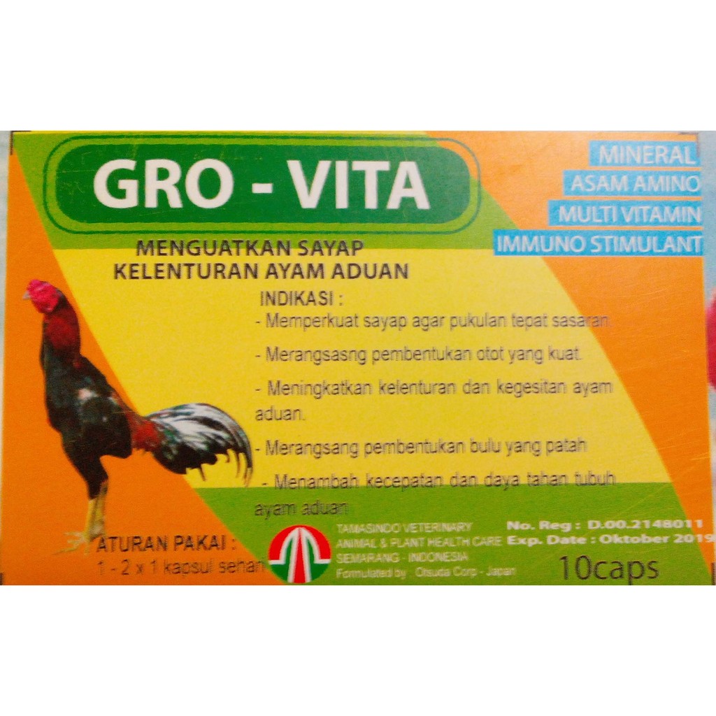 Grovita 10 Capsul Menguatkan Sayap Kelenturan Sayap Ayam Aduan