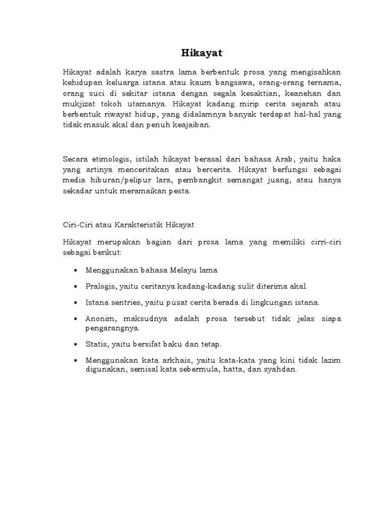 Hikayat Adalah Pengertian Contoh Ciri Dan Karakteristik